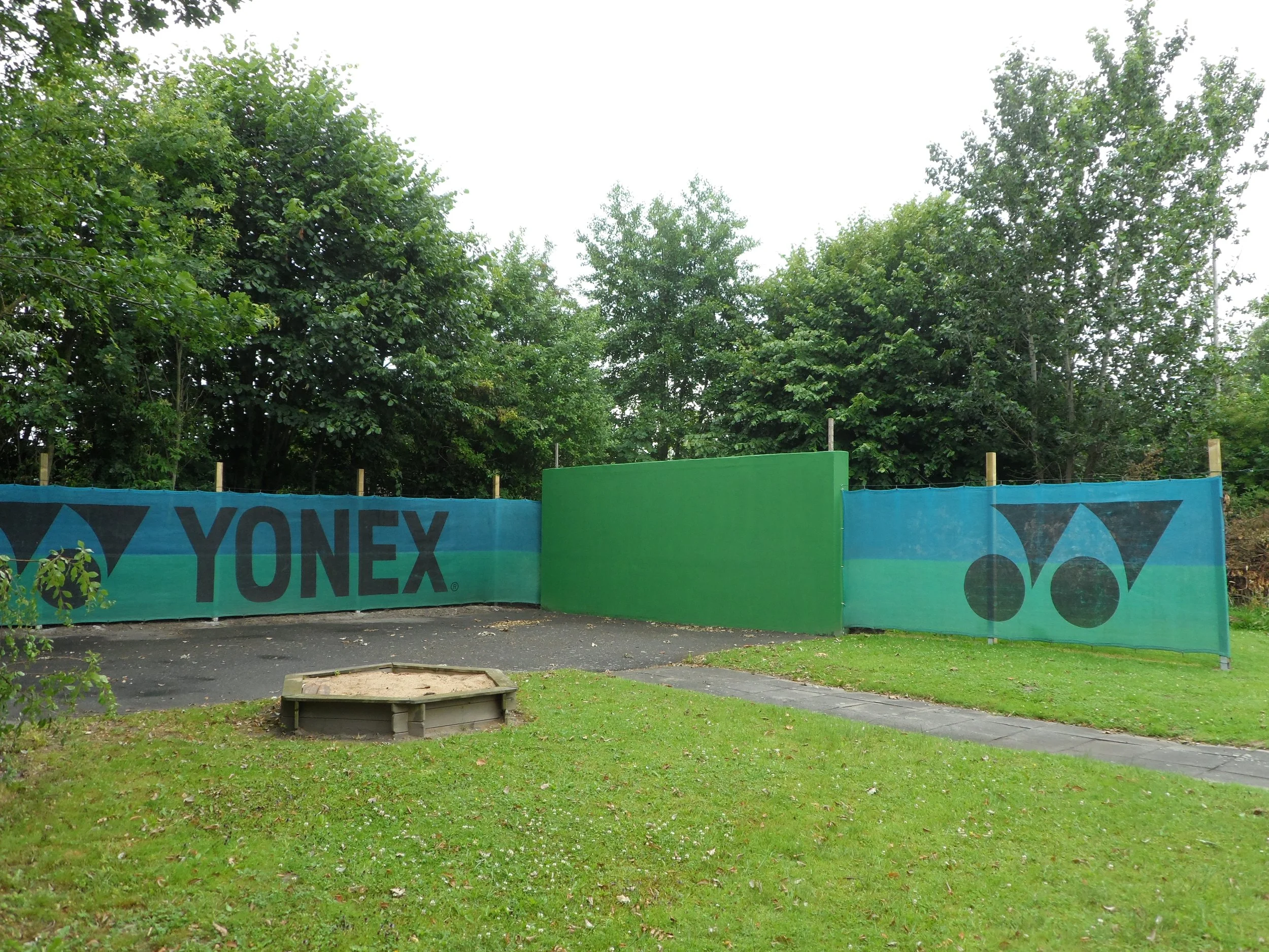TC Alsterquelle: Linien müssten nachgemalt werden, der Asphaltboden ist uneben und die Höhe der Wand zu niedrig, Note 4