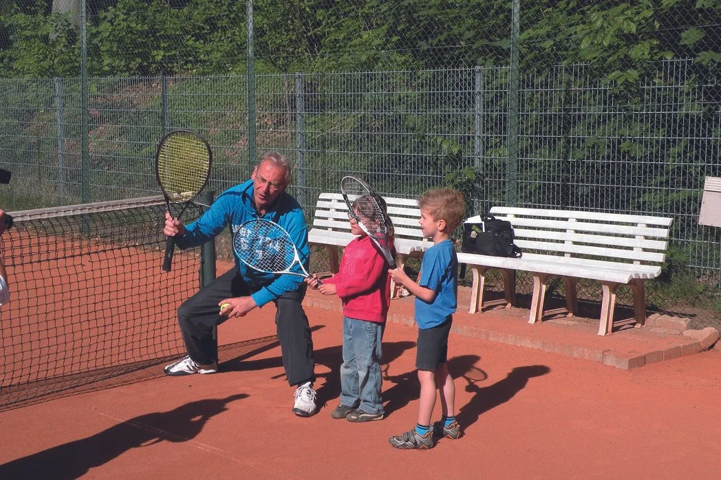 Bei mir gibt es keine Eltern am Trainingsplatz, sie dürfen gern auf der Anlage sein, müssen sich das Training ihrer Kleinen aber mit dem Fernglas anschauen. Das erste, was ein „Neuling“ bei mir zeigen muss, ist nicht etwa, dass er den Schläger halten kann, sondern dass er meinen Schleifchenkurs besteht.