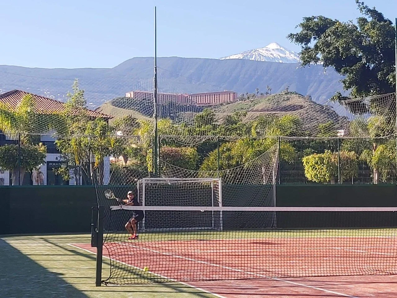 Platz im CDO Puerto de la Cruz (bei Alvaro) mit dem Schneebedeckten Teide im Hintergrund. Da hat man Probleme sich nur auf den Ball zu konzentrieren.